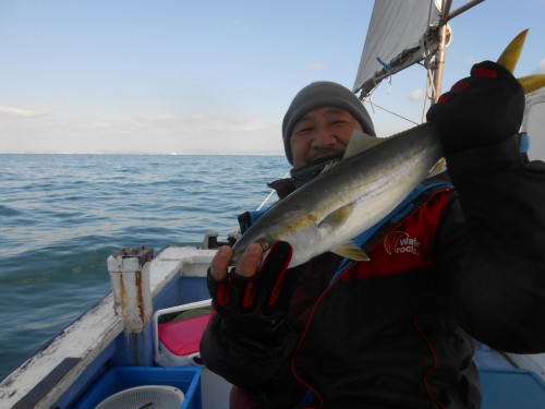 朝からの強風で、釣りづらいなか、船酔いにも負けずに