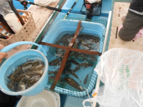 丸ハギまじりの小型中心で1人 18~27匹です。