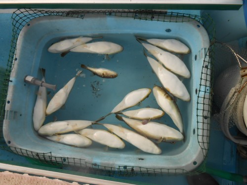 朝から退屈しない程度に良型のフグが釣れました。一時の不調な時よりも