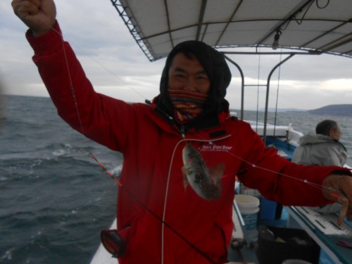 強風のなか、幸運にも出船できフグ釣りに挑戦しました。